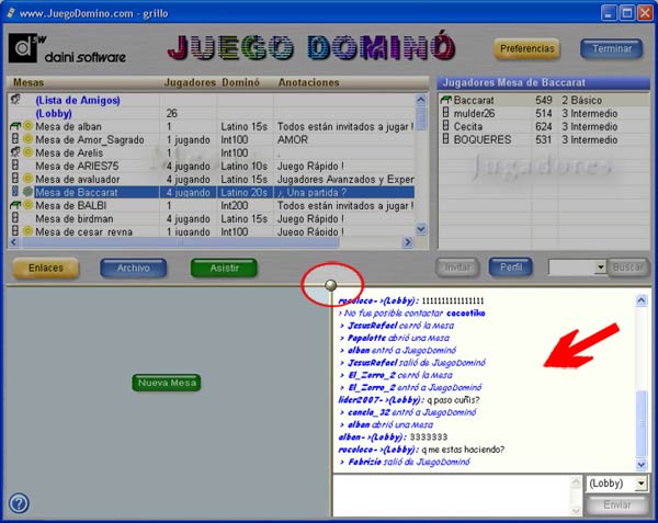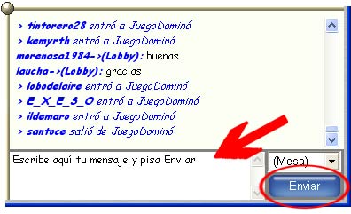 La zona del Chat se encuentra abajo a la derecha y muestra los mensajes que tu envías